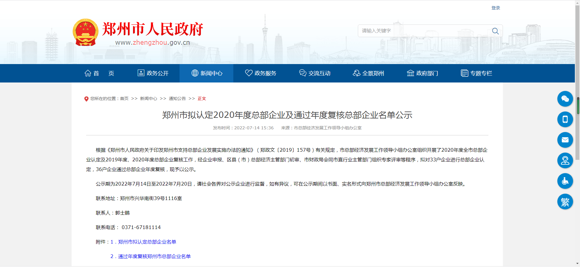 近日,根據《鄭州市人民政府關(guan) 於(yu) 印發鄭州市支持總部企業(ye) 發展實施辦法的通知》(鄭政文〔2019〕157號)有關(guan) 規定,鄭州市總部經濟發展工作領導小組辦公室組織開展了2020年度全市總部企業(ye) 認定及2019年度、2020年度總部企業(ye) 複核工作,經企業(ye) 申報、區縣(市)總部經濟主管部門初審、市財政局會(hui) 同市直行業(ye) 主管部門組織專(zhuan) 家評審等程序,擬對33戶企業(ye) 進行總部企業(ye) 認定,电竞娱乐平台靠谱位列名單之中。