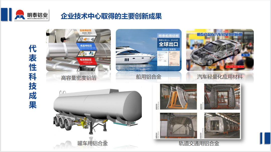 公司始終堅持“創新、綠色、智慧、開放”的發展理念,以創新為(wei) 引領,積極打造以“綠色、智慧”為(wei) 中心的科技創新體(ti) 係,深入開展“技術創新、工藝創新、產(chan) 品創新、裝備創新”的四新活動。同時解放思想,深入與(yu) 中國有色協會(hui) 、中南大學等建立了長期合作關(guan) 係,旗下4個(ge) 子公司被認定為(wei) 國家高新技術企業(ye) ,建成1個(ge) 國家認可實驗室。依托科創與(yu) 項目合並發力,大力發展高端鋁合金、軌道交通用鋁、新能源用鋁等高附加值產(chan) 品,公司已取得汽車、船板、航空、潔食等產(chan) 品認證,市場占有率穩居前列,產(chan) 品附加值均高於(yu) 行業(ye) 平均水平。