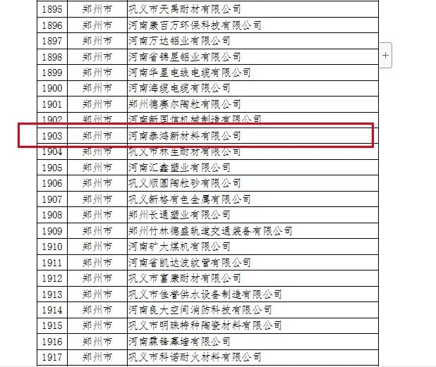 1月31日,河南省工信廳發布關(guan) 於(yu) 2022年度河南省創新型中小企業(ye) 的公示名單,电竞实时比赛数据直播平台子公司河南泰鴻新材料有限公司成功入圍。