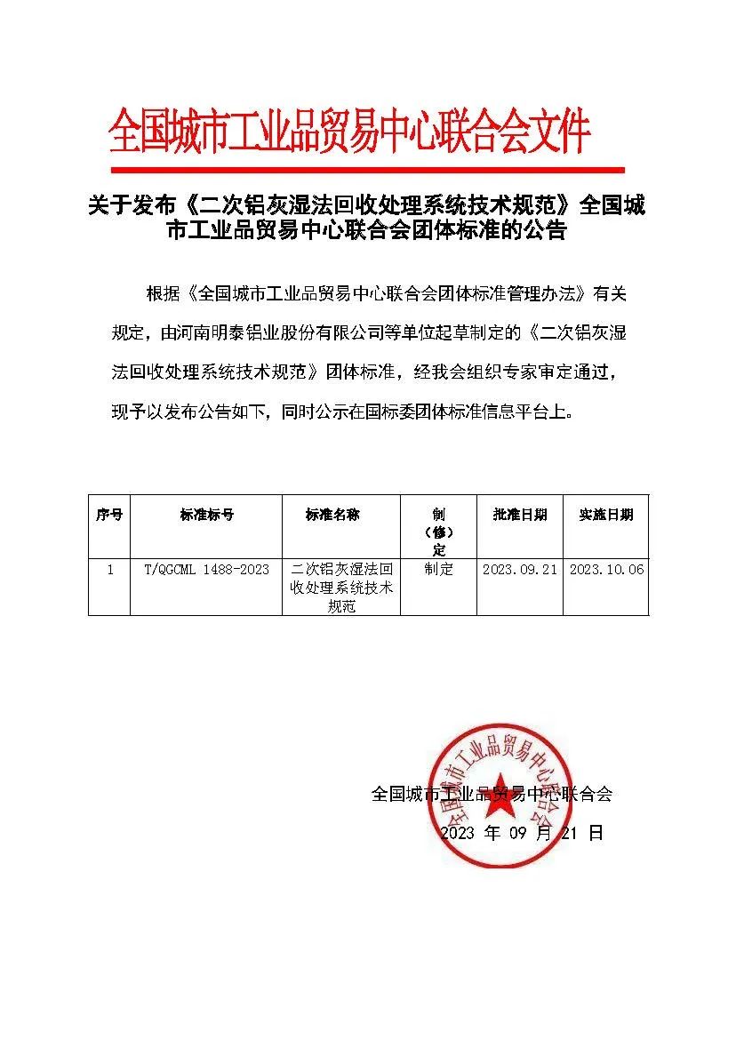 《二次鋁灰濕法回收處理係統技術規範》這項團體(ti) 標準旨在有效地處理二次鋁灰,提高資源利用率,減少環境汙染。該團標詳細規定了二次鋁灰濕法處理係統建設施工要求、工藝流程、設備要求、安全環保措施等方麵的內(nei) 容。這項技術規範實施後,將有利於(yu) 鋁灰資源化利用技術的規範化和大範圍推廣。